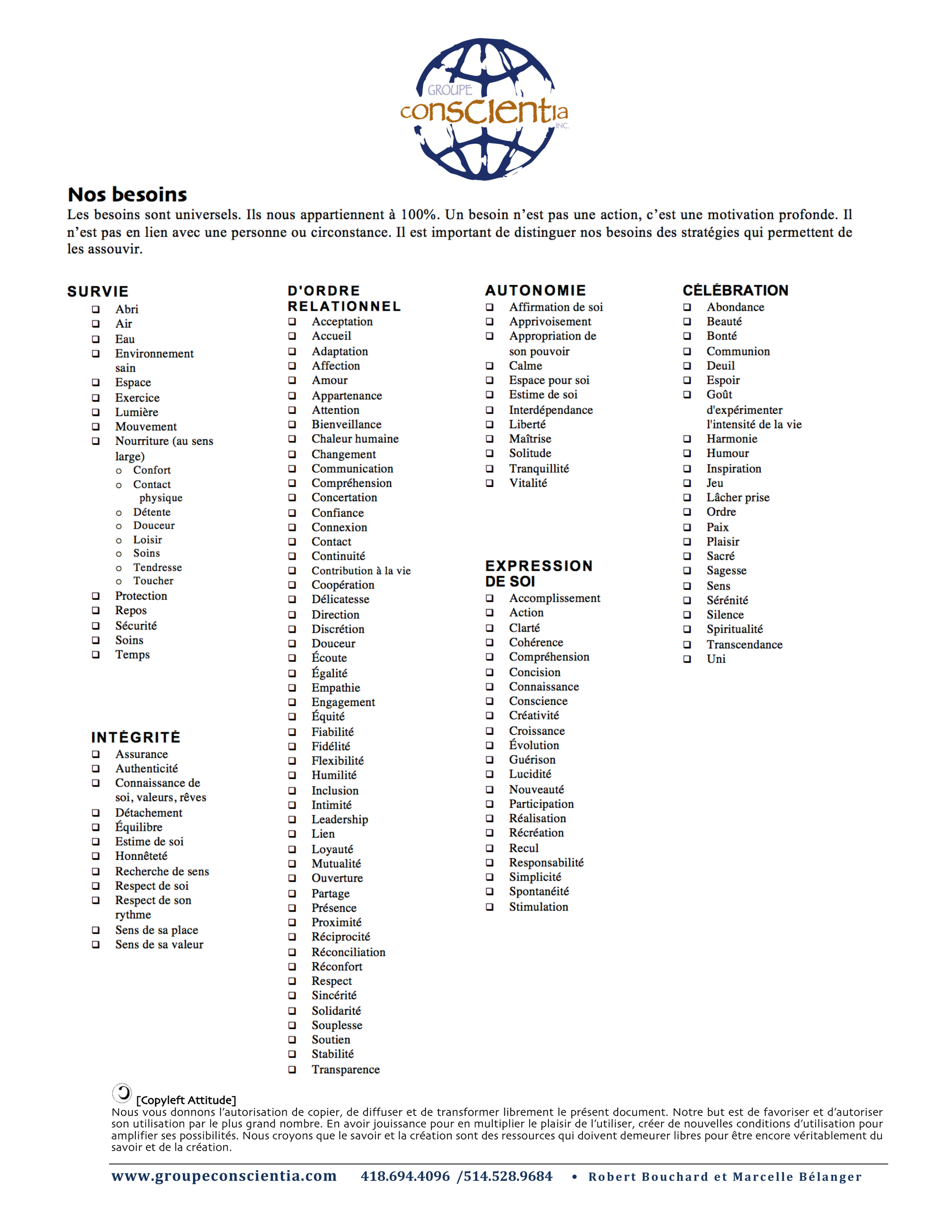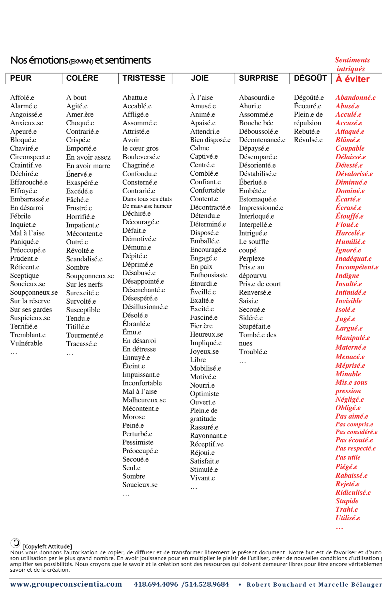 Liste des émotions et besoins